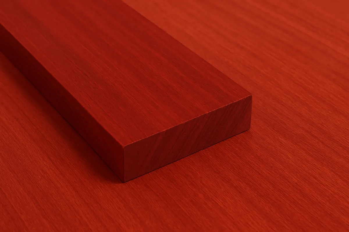 Bloodwood is a South American hardwood prized for its deep red color and exceptional density. It is very hard, heavy, and durable, often used for fine furniture, flooring, and decorative accents. While it can be brittle and challenging to work with, its striking color and glassy finish make it a popular choice for high-end projects, turning, and specialty items.
