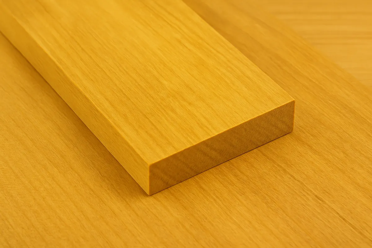 Poplar is a lightweight hardwood that is widely available and affordable, making it a popular choice for painted projects and utility furniture. Its color ranges from creamy white to greenish or brown streaks, with a straight, uniform grain. While not as hard or durable as other hardwoods, poplar machines easily, holds paint well, and is often used in drawer sides, trim, and hidden structural components.
